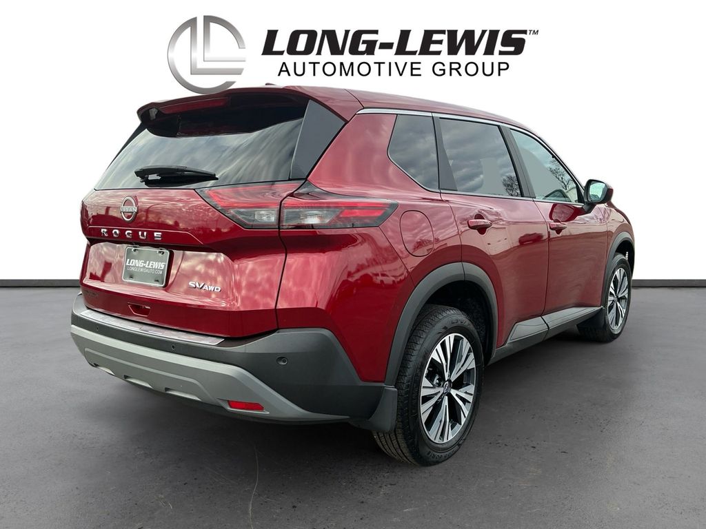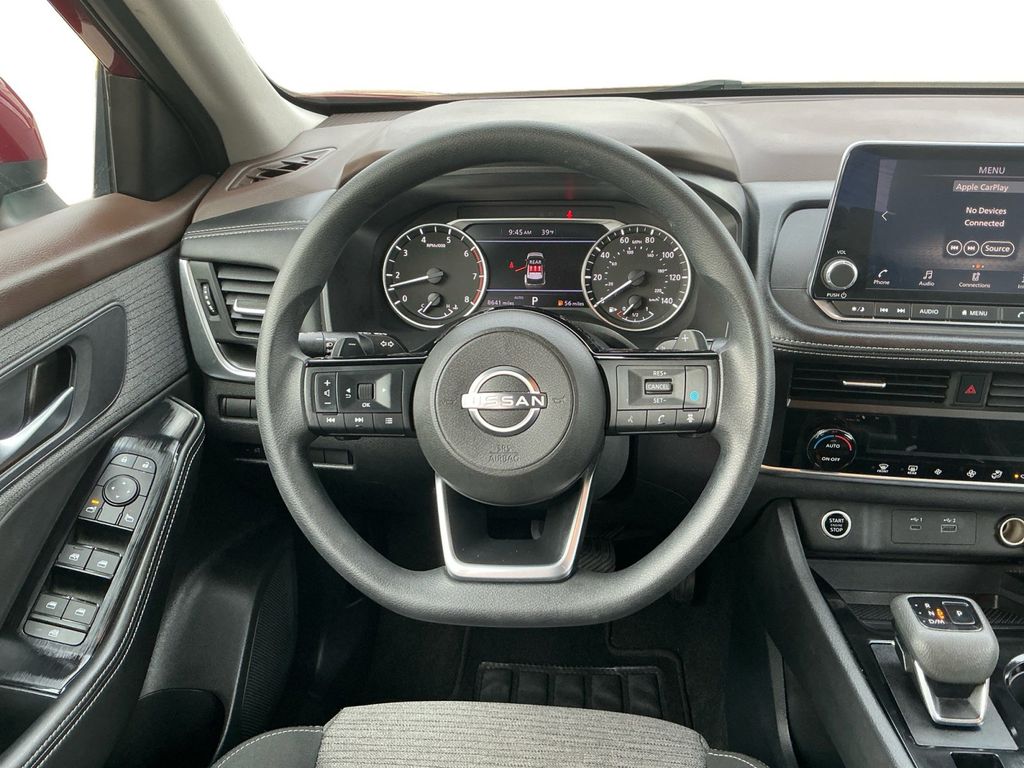 2023 Nissan Rogue SV Scarlet Ember Tintcoat SV AWD CVT with Xtronic 1.5L I3 Turbocharged DOHC 12V LEV3-ULEV50 201hp AWD, 18" Aluminum Alloy Wheels, 4-Wheel Disc Brakes, 5.604 Axle Ratio, 6 Speakers, ABS brakes, Air Conditioning, Alloy wheels, AM/FM Radio, AM/FM radio: SiriusXM, Auto High-beam Headlights, Automatic temperature control, Black Splash Guards (Set of 4), Brake assist, Bumpers: body-color, Chrome Rear Bumper Protector, Cloth Seat Trim, Delay-off headlights, Driver door bin, Driver vanity mirror, Dual front impact airbags, Dual front side impact airbags, Electronic Stability Control, Emergency communication system: NissanConnect Services, First Aid Kit, Floor Mats w/1-Piece Cargo Area Protector, Four wheel independent suspension, Front anti-roll bar, Front Bucket Seats, Front Center Armrest, Front dual zone A/C, Front reading lights, Fully automatic headlights, Heated door mirrors, Illuminated entry, Knee airbag, Low tire pressure warning, NissanConnect featuring Apple CarPlay and Android Auto, Occupant sensing airbag, Outside temperature display, Overhead airbag, Overhead console, Panic alarm, Passenger door bin, Passenger vanity mirror, Power door mirrors, Power driver seat, Power steering, Power windows, Radio data system, Rear anti-roll bar, Rear Parking Sensors, Rear seat center armrest, Rear side impact airbag, Rear window defroster, Rear window wiper, Remote keyless entry, Speed control, Speed-Sensitive Wipers, Split folding rear seat, Spoiler, Steering wheel mounted audio controls, Tachometer, Telescoping steering wheel, Tilt steering wheel, Traction control, Trip computer, Variably intermittent wipers, AWD.