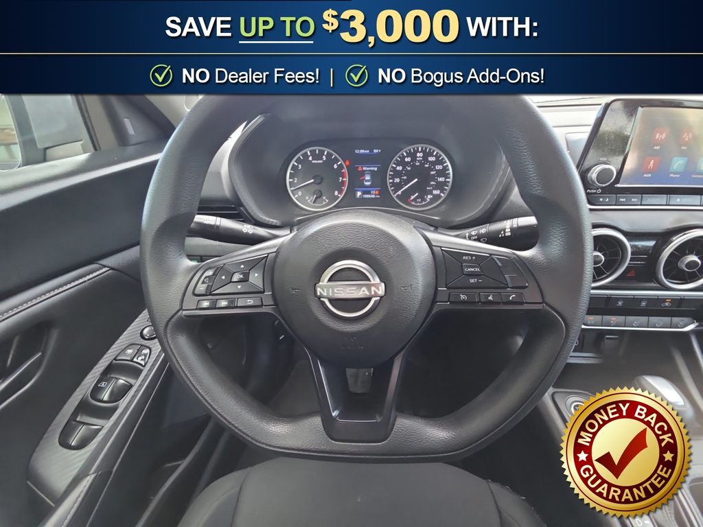 CVT with Xtronic, Charcoal Cloth, 16" Steel Wheels w/Full Wheel Covers, 4 Speakers, ABS brakes, Air Conditioning, AM/FM radio, Auto High-beam Headlights, Blind Spot Warning, Brake assist, Bumpers: body-color, Carpeted Floor Mats w/Trunk Mat, Cloth Seat Trim, Delay-off headlights, Driver door bin, Driver vanity mirror, Dual front impact airbags, Dual front side impact airbags, Electronic Stability Control, Four wheel independent suspension, Front anti-roll bar, Front Bucket Seats, Front Center Armrest, Front reading lights, Fully automatic headlights, Illuminated entry, Knee airbag, Low tire pressure warning, NissanConnect featuring Apple CarPlay and Android Auto, Occupant sensing airbag, Outside temperature display, Overhead airbag, Overhead console, Panic alarm, Passenger door bin, Passenger vanity mirror, Power door mirrors, Power steering, Power windows, Radio data system, Radio: AM/FM w/RDS/MP3/Aux-In, Rear anti-roll bar, Rear Parking Sensors, Rear side impact airbag, Rear window defroster, Remote keyless entry, Speed control, Speed-sensing steering, Split folding rear seat, Steering wheel mounted audio controls, Tachometer, Technical Spec Change 2, Telescoping steering wheel, Tilt steering wheel, Traction control, Trip computer, Variably intermittent wipers, CVT with Xtronic, Charcoal Cloth. 2024 Nissan Sentra S
