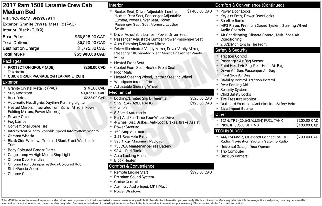 2017 Ram 1500 Laramie Truck HEMI V8 Multi Displacement VVT