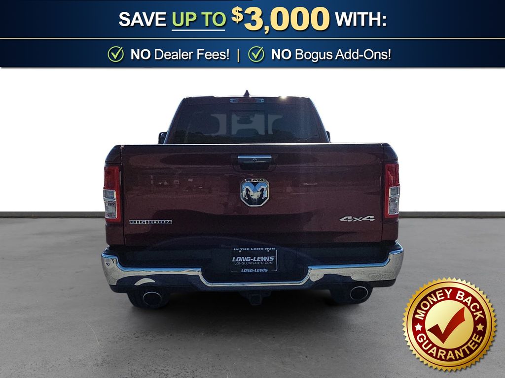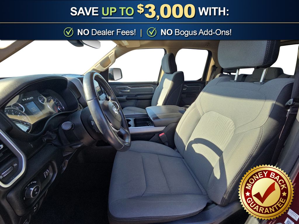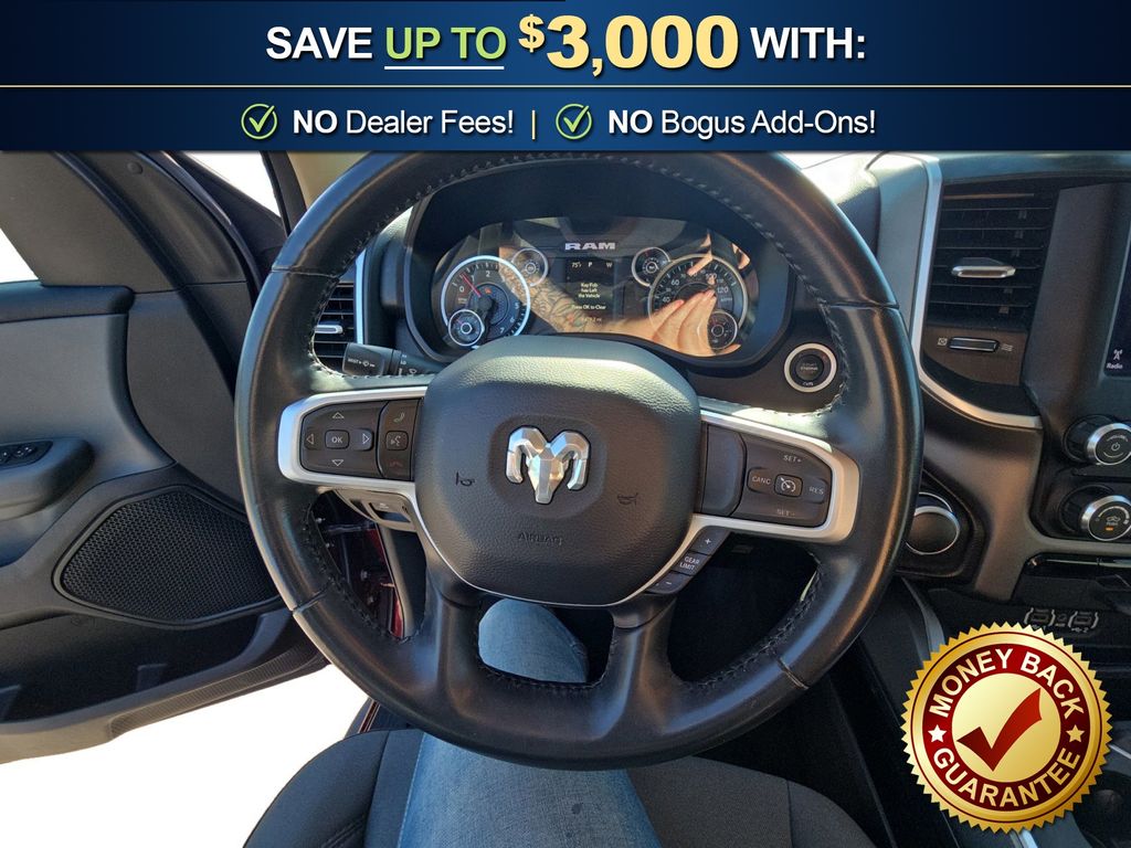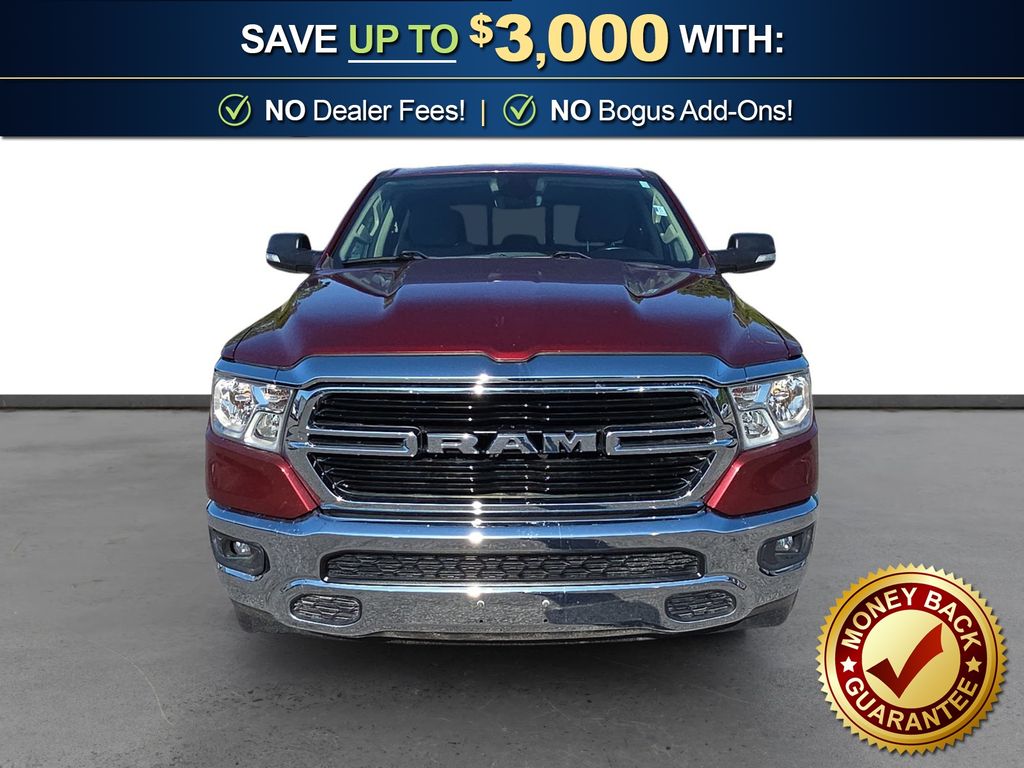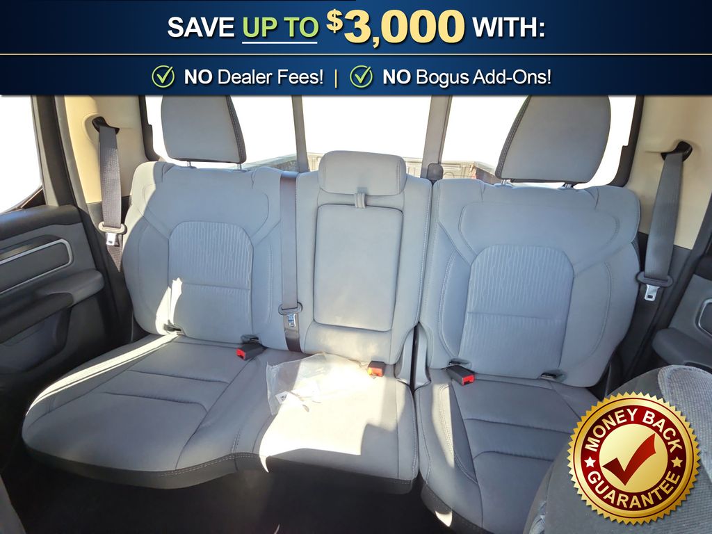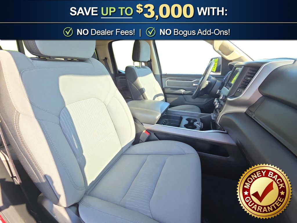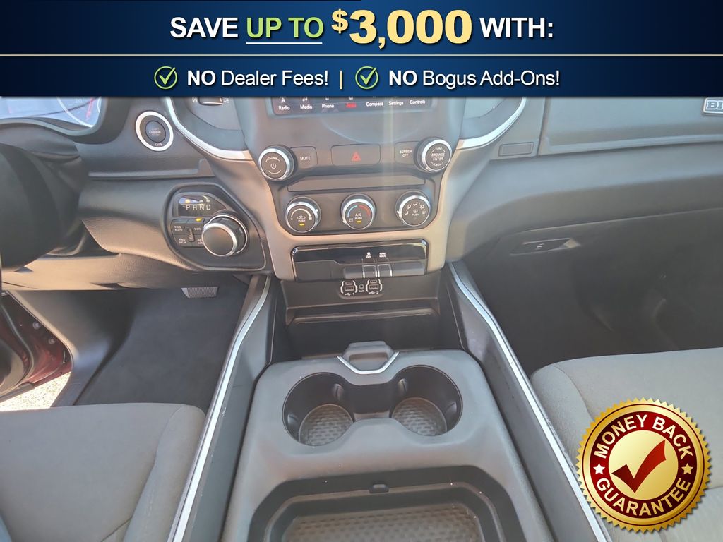 3 Rear Seat Head Restraints, 3.21 Rear Axle Ratio, 4 Way Front Headrests, 4-Wheel Disc Brakes, 48V Belt Starter Generator, 6 Speakers, ABS brakes, Air Conditioning, Alloy wheels, AM/FM radio, Anti-Spin Differential Rear Axle, Auto-Dimming Rear-View Mirror, Big Horn IP Badge, Big Horn Level 1 Equipment Group, Black Premium Power Mirrors, Brake assist, Bumpers: chrome, Class IV Receiver Hitch, Cloth Bench Seat, Cluster 3.5" TFT Color Display, Compass, Delay-off headlights, Driver door bin, Dual front impact airbags, Dual front side impact airbags, Electronic Stability Control, Foam Bottle Insert (Door Trim Panel), Front anti-roll bar, Front Center Armrest w/Storage, Front fog lights, Front reading lights, Front Seat Back Map Pockets, Front wheel independent suspension, Fully automatic headlights, Glove Box Lamp, GPS Antenna Input, Heated door mirrors, Illuminated entry, Leather steering wheel, Low tire pressure warning, Manual Adjust 4-Way Front Passenger Seat, Occupant sensing airbag, Outside temperature display, Overhead airbag, Overhead console, Panic alarm, ParkView Rear Back-Up Camera, Passenger door bin, Passenger vanity mirror, Power 4-Way Driver Lumbar Adjust, Power 8-Way Driver Seat, Power Adjustable Pedals, Power door mirrors, Power steering, Power windows, Quick Order Package 25Z Big Horn, Radio data system, Radio: Uconnect 3 w/5" Display, Radio: Uconnect 4 w/8.4" Display, Rear 60/40 Folding Seat, Rear anti-roll bar, Rear Dome w/On/Off Switch Lamp, Rear Power Sliding Window, Rear seat center armrest, Rear step bumper, Rear Window Defroster, Remote keyless entry, SiriusXM Satellite Radio, Speed control, Split folding rear seat, Steering wheel mounted audio controls, Sun Visors w/Illuminated Vanity Mirrors, Tachometer, Telescoping steering wheel, Tilt steering wheel, Traction control, Trip computer, Universal Garage Door Opener, Variably intermittent wipers, Voltmeter, Wheels: 18" x 8" Cast-Aluminum Painted, Wheels: 20" x 9" Aluminum Chrome Clad (WRK). 2020 Ram 1500 Big Horn/Lone Star