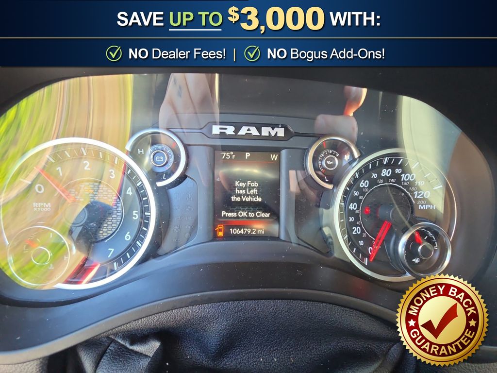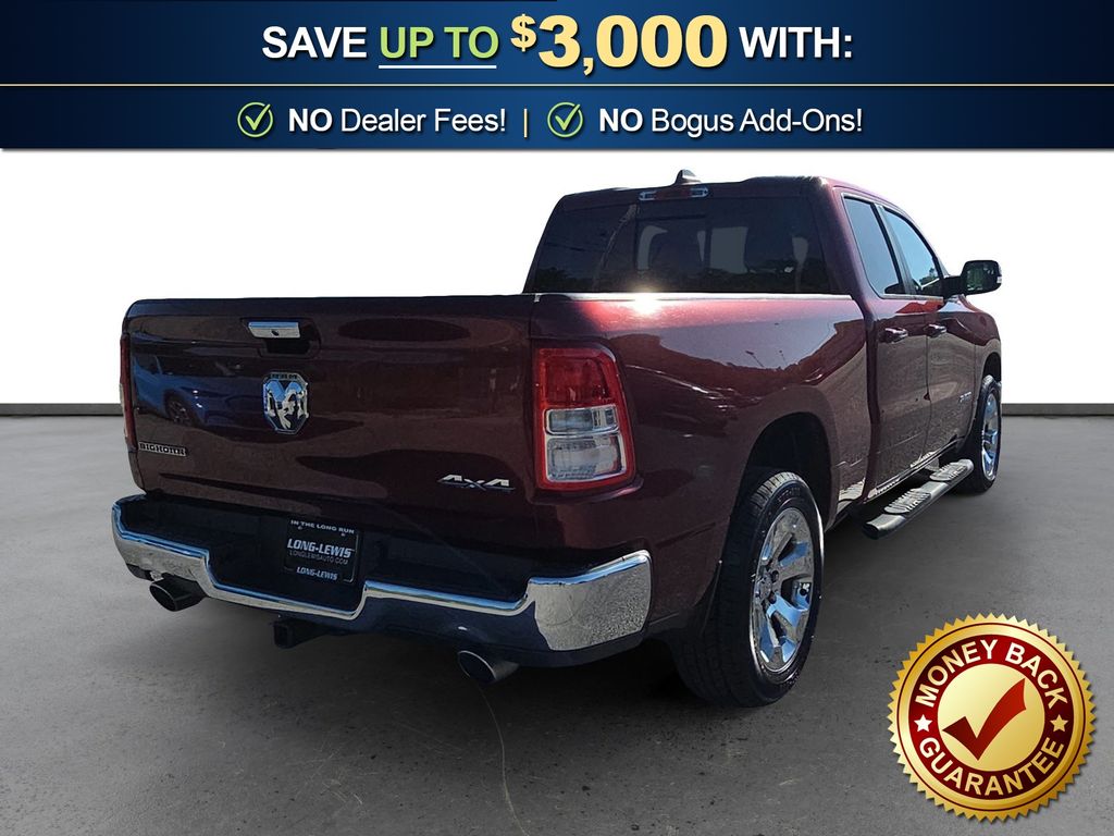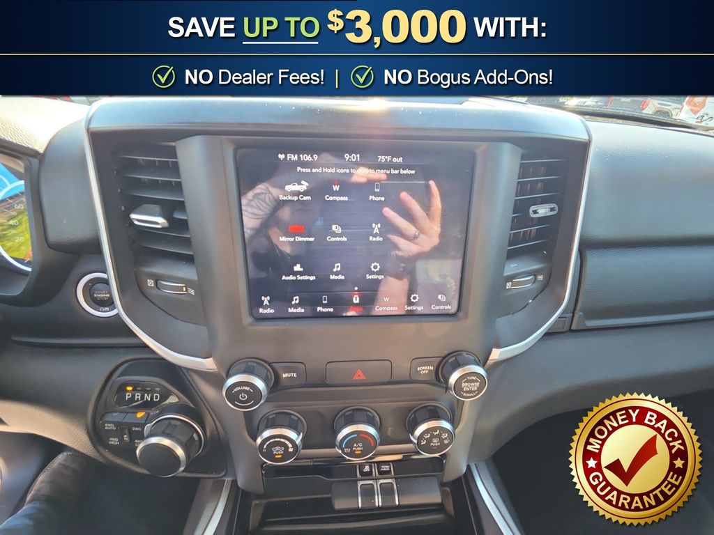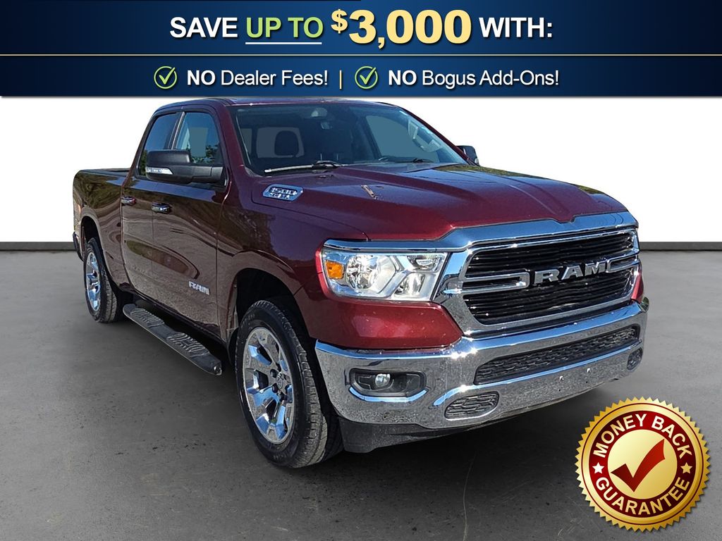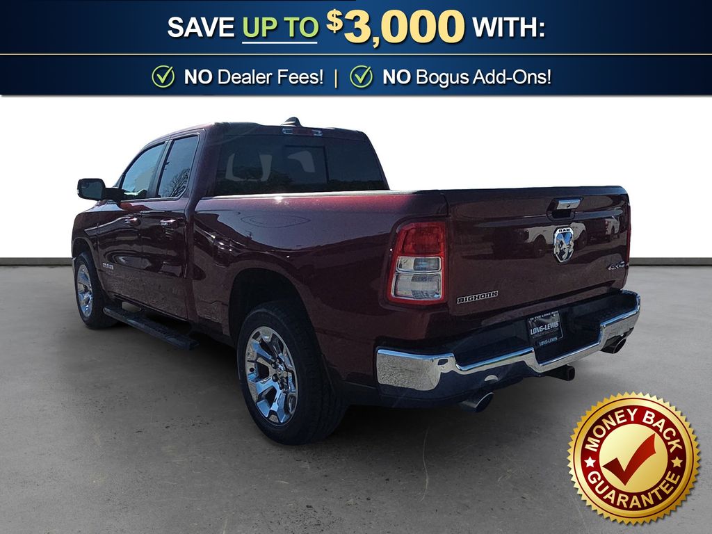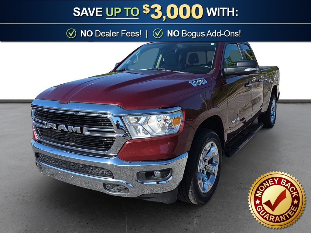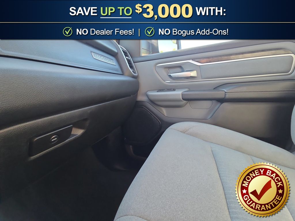 3 Rear Seat Head Restraints, 3.21 Rear Axle Ratio, 4 Way Front Headrests, 4-Wheel Disc Brakes, 48V Belt Starter Generator, 6 Speakers, ABS brakes, Air Conditioning, Alloy wheels, AM/FM radio, Anti-Spin Differential Rear Axle, Auto-Dimming Rear-View Mirror, Big Horn IP Badge, Big Horn Level 1 Equipment Group, Black Premium Power Mirrors, Brake assist, Bumpers: chrome, Class IV Receiver Hitch, Cloth Bench Seat, Cluster 3.5" TFT Color Display, Compass, Delay-off headlights, Driver door bin, Dual front impact airbags, Dual front side impact airbags, Electronic Stability Control, Foam Bottle Insert (Door Trim Panel), Front anti-roll bar, Front Center Armrest w/Storage, Front fog lights, Front reading lights, Front Seat Back Map Pockets, Front wheel independent suspension, Fully automatic headlights, Glove Box Lamp, GPS Antenna Input, Heated door mirrors, Illuminated entry, Leather steering wheel, Low tire pressure warning, Manual Adjust 4-Way Front Passenger Seat, Occupant sensing airbag, Outside temperature display, Overhead airbag, Overhead console, Panic alarm, ParkView Rear Back-Up Camera, Passenger door bin, Passenger vanity mirror, Power 4-Way Driver Lumbar Adjust, Power 8-Way Driver Seat, Power Adjustable Pedals, Power door mirrors, Power steering, Power windows, Quick Order Package 25Z Big Horn, Radio data system, Radio: Uconnect 3 w/5" Display, Radio: Uconnect 4 w/8.4" Display, Rear 60/40 Folding Seat, Rear anti-roll bar, Rear Dome w/On/Off Switch Lamp, Rear Power Sliding Window, Rear seat center armrest, Rear step bumper, Rear Window Defroster, Remote keyless entry, SiriusXM Satellite Radio, Speed control, Split folding rear seat, Steering wheel mounted audio controls, Sun Visors w/Illuminated Vanity Mirrors, Tachometer, Telescoping steering wheel, Tilt steering wheel, Traction control, Trip computer, Universal Garage Door Opener, Variably intermittent wipers, Voltmeter, Wheels: 18" x 8" Cast-Aluminum Painted, Wheels: 20" x 9" Aluminum Chrome Clad (WRK). 2020 Ram 1500 Big Horn/Lone Star