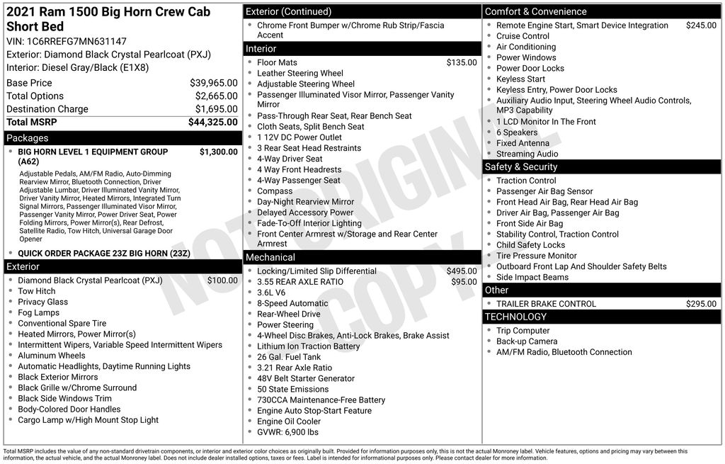 2021 Ram 1500 Big Horn/Lone Star Truck Crew Cab V-6 cyl