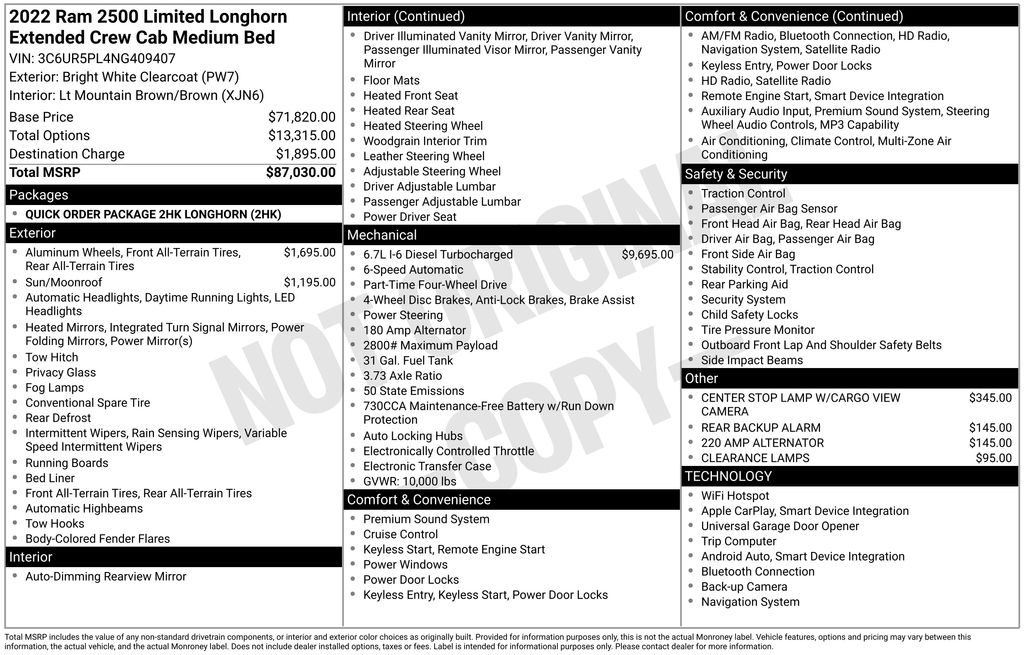 2022 Ram 2500 Longhorn Truck Cummins I6 Turbodiesel