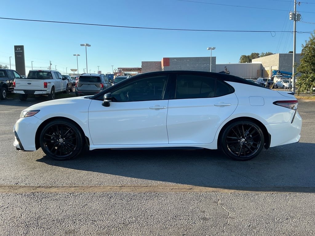 2021 Toyota Camry XSE White XSE FWD 8-Speed Automatic 2.5L I4 DOHC 16V Leather, 4-Wheel Disc Brakes, 6 Speakers, ABS brakes, Air Conditioning, Alloy wheels, AM/FM radio: SiriusXM, Apple CarPlay/Android Auto, Auto High-beam Headlights, Auto-dimming Rear-View mirror, Automatic temperature control, Brake assist, Bumpers: body-color, Delay-off headlights, Driver door bin, Driver vanity mirror, Dual front impact airbags, Dual front side impact airbags, Electronic Stability Control, Emergency communication system: Safety Connect with 1-year trial, Exterior Parking Camera Rear, Four wheel independent suspension, Front anti-roll bar, Front Bucket Seats, Front Center Armrest, Front dual zone A/C, Front reading lights, Fully automatic headlights, Garage door transmitter: HomeLink, Heated door mirrors, Heated front seats, Illuminated entry, Knee airbag, Low tire pressure warning, Multi-Stage Heated Front Bucket Seats, Occupant sensing airbag, Outside temperature display, Overhead airbag, Overhead console, Panic alarm, Passenger door bin, Passenger vanity mirror, Perforated Leather Seat Trim, Power door mirrors, Power driver seat, Power passenger seat, Power steering, Power windows, Radio data system, Radio: AM/FM/HD Audio Plus, Rear anti-roll bar, Rear reading lights, Rear seat center armrest, Rear side impact airbag, Rear window defroster, Remote keyless entry, Security system, Speed control, Speed-sensing steering, Split folding rear seat, Spoiler, Steering wheel mounted audio controls, Tachometer, Telescoping steering wheel, Tilt steering wheel, Traction control, Trip computer, Turn signal indicator mirrors, Variably intermittent wipers, Wheels: 8.0J x 19" Black Machined-Finish Alloy, Leather.
