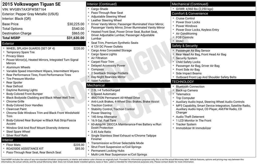2015 Volkswagen Tiguan SEL SUV 4-Cylinder Turbocharged