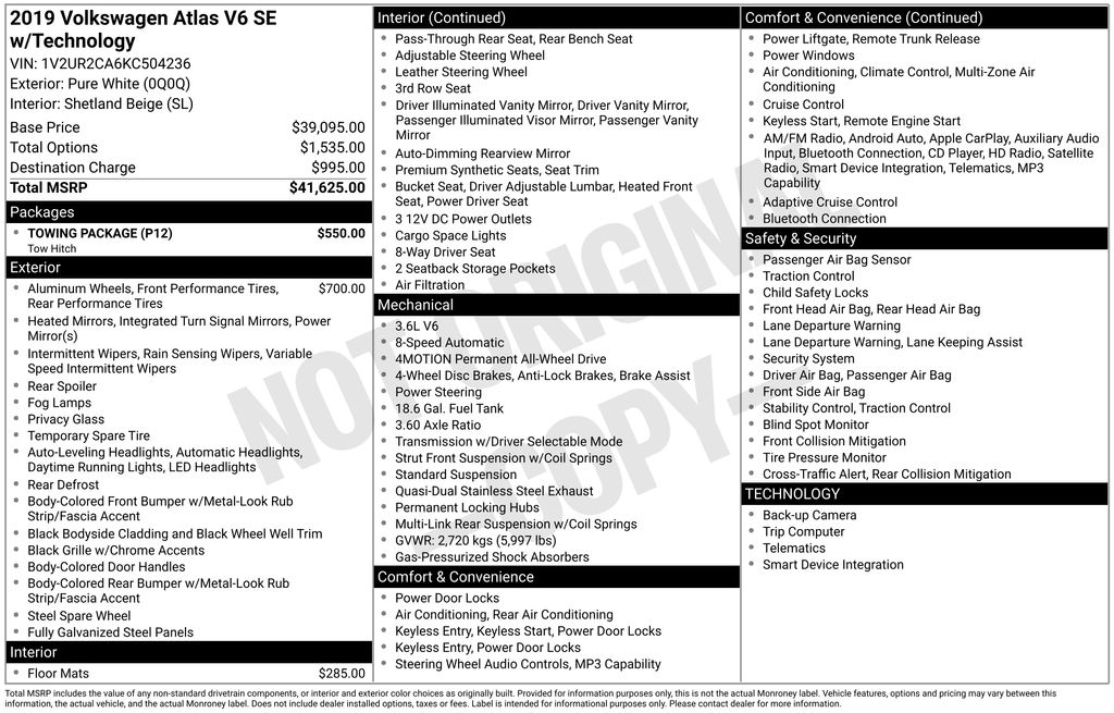 (Warning- a little long) We were looking for a roomy 3 row SUV with easy access to all 3 rows. After a ton of research and multiple test drives of the possible options, we settled on the VW Atlas, SEL Premium. We’ve owned our Atlas for a little over a month now. We’ve taken it on a couple of long trips (1000+ miles), so we’ve seen enough to write a decent review. The Atlas was one of 4 finalists for us. The others were the GMC Acadia, the Chevy Traverse, and the Infiniti QX60. These were our finalists for one primary reason- access to the rear seat with car seats installed in the middle row seats (without climbing into the middle row, and going through the middle space between the captain’s chairs). No other 3 row SUVs had this option, although I understand some will have it for the 2020 model year. Because we only had 4 models to look at, we focused all our attention on these models. Likes: Third row access is incredibly easy in the Atlas. By pulling up on the release on the top of the seat, the entire seat tips forward, and then slides forward, leaving a large opening to access the rear seat, and allowing us to buckle our 4 year old into that seat very easily, even while standing outside the car. This middle row seat movement can be performed with a car seat installed in the middle row seats, a maneuver that very few 3 row SUVs are capable of. The Infiniti QX-60 has a similar setup, and it is just as easy to use. The Acadia and Traverse also have this option, but during our test drives, we found the mechanism to be incredibly difficult to use. The salesman said it was probably just stiff, but it was almost impossible for my wife to get the seat to move, and it happened in both of those models. Also, the GMC and Chevy only have this capability on the passenger side, which is highly annoying. The interior of the Atlas is HUGE, the door openings are very wide to provide easy access, and it is very comfortable. The seats in the Atlas were by far the most comfortable of any vehicle we tested. When I say that, I mean ALL of the seats, to include the 2nd and 3rd rows, and the 3rd row is actually usable by adults. I am 5’10”, and I was very comfortable back there. I would not say the same of the other three vehicles tested. Also, the middle row seats of the Chevy and GMC were very uncomfortable. The had a weird shape, with a weird forward “hump” that hit right between the shoulder blades. I’m sure this has something to do with crash safety or something like that, but those seats were just extremely uncomfortable. Our Atlas is equipped with a panoramic sunroof, which is pretty cool. It also has a power sunshade for the sunroof. The Chevy and GMC have a very cheap, manual cover. It is spring-loaded, and if you accidentally let go of it, it will snap back like a window shade. At this price level, it should be a power sunshade. While we are on the topic of sunshades: the 2nd row windows in the Atlas have built-in sunshades, which is ingenious! I wish all cars had this feature. The Atlas has an infotainment system that is easy to use and intuitive, and it allows for swiping and pinch zooming. Apple Car Play is awesome! Surprisingly, some manufacturers have not integrated this feature at this time. The digital instrument panel has a very nice, modern look, and it offers 5 or 6 different views. One of the really cool things about the Atlas- you can display the nav map in the middle of the instrument panel. Additionally, you can make the map bigger and the gauges smaller, which allows you to see more map detail- a really nice option. The car even has an altimeter, which is really cool to me (I’m a pilot by trade). Not so much for my wife… The Atlas allows for 4 customizable driver settings. It also has an overhead view camera, which allows you to see a birds-eye view of the vehicle- very handy to ensure you are actually centered in that parking spot! (this is only offered in the highest trim level) The car also has a traditional shift lever. This appeals to me, because I’m old school. The Atlas has a very nice exterior, and it looks great from both the front and the back. The LED headlights are really nice, and much brighter than standard headlights. Also, the daytime running lights look really cool (I noticed that when another Atlas pulled up behind us on the freeway). It also has a small turn radius, which makes maneuvering in tight spaces much easier. The Atlas has a few other really nice options- adaptive cruise control, auto-dimming headlights, auto-wipers, and an auto-park feature (highest trim level only) for parallel and back in perpendicular parking. The cruise control also has an option to speed up or slow down in increments of 5 mph in addition to the more standard 1 mph increment, which is handy. It also has a feature that turns on the fog light on the side of the car in the direction of a turn, providing extra light for making the turn safely. You can also lock the middle row seat HVAC controls, to prevent the inevitable arguments from the kiddos! One of the best things about the Atlas is the industry leading warranty- 6 years/72k miles, bumper to bumper. Very few of the competitors even come close to this. And it is manufactured in the USA, which I really like. Now let’s talk about the things I don’t like about the car. (And believe me when I say these things are pretty minor in the grand scheme of things…) The biggest gripe I have is the engine power. Given that my primary goal with this vehicle is to comfortably get a lot of people from point A to B, this isn’t a huge deal. I didn’t buy this car to qualify for the Indy 500, but I do wish VW offered some different engine options, like a V-8 or a turbo V-6. They do offer a turbo 4 cylinder, but it is not offered above the base trim level, and I don’t think it is anything more than adequate for this car anyway. A close 2nd for cons would be the height of the front seat armrests (on the door side of each