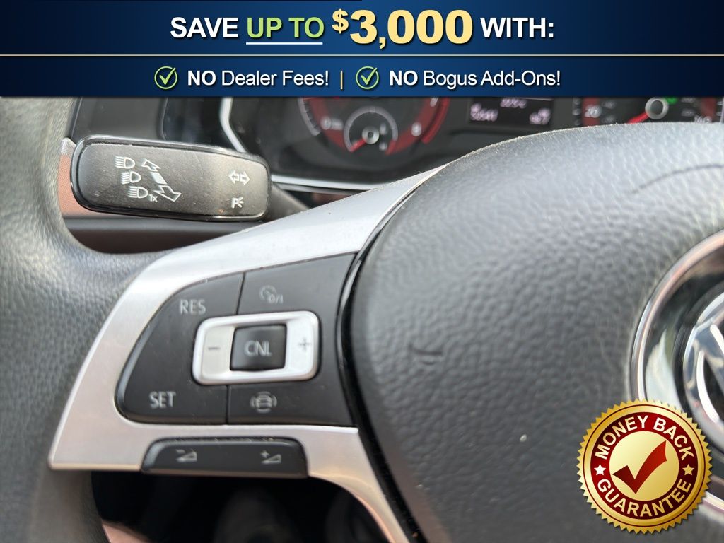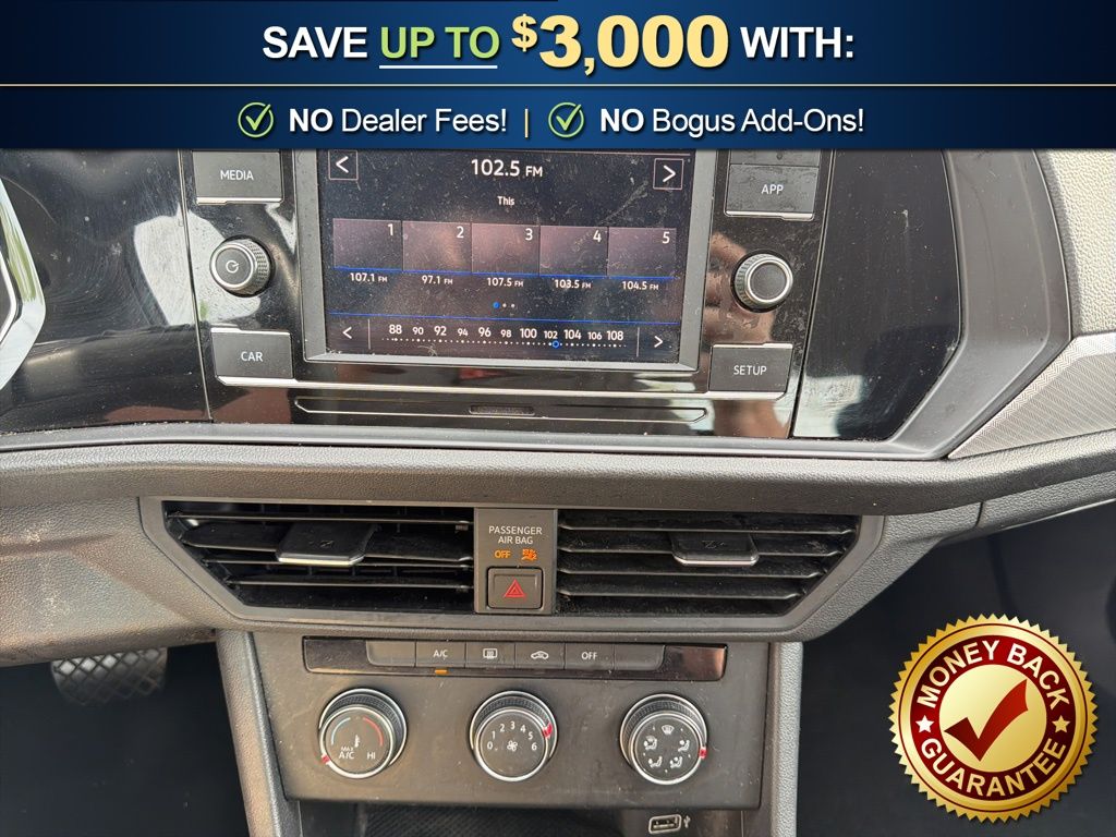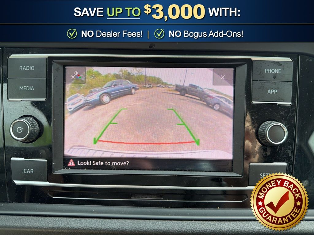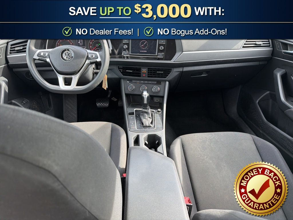 Black Cloth, 4 Speakers, 4-Wheel Disc Brakes, ABS brakes, Air Conditioning, Alloy wheels, AM/FM radio, Brake assist, Bumperdillo Protection Plate for Rear Bumper, Bumpers: body-color, Cloth Seat Trim, Delay-off headlights, Driver Assistance Package, Driver door bin, Driver vanity mirror, Dual front impact airbags, Dual front side impact airbags, Electronic Stability Control, Exterior Parking Camera Rear, Front anti-roll bar, Front Bucket Seats, Front Center Armrest, Front Comfort Seats, Front wheel independent suspension, Fully automatic headlights, Illuminated entry, Low tire pressure warning, Monster Mats w/Logo Rubber Mats Kit (Set of 4), Occupant sensing airbag, Outside temperature display, Overhead airbag, Panic alarm, Passenger door bin, Passenger vanity mirror, Power door mirrors, Power steering, Power windows, Radio data system, Radio: Composition Color w/6.5" Touchscreen, Rear anti-roll bar, Rear reading lights, Rear window defroster, Remote keyless entry, Speed control, Speed-sensing steering, Split folding rear seat, Steering wheel mounted audio controls, Tachometer, Telescoping steering wheel, Tilt steering wheel, Traction control, Trip computer, Variably intermittent wipers, Wheels: 16" Silver Rama, Black Cloth. 2019 Volkswagen Jetta 1.4T S